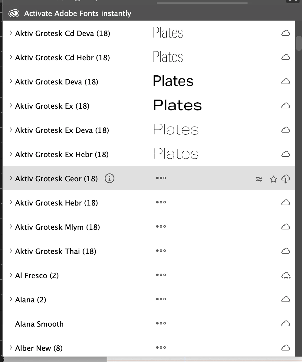 - When I click to see the fonts within a family that is not previewing, they all individually preview with the exception of the regular font (I assume this has something to do with the lack of preview beforehand);