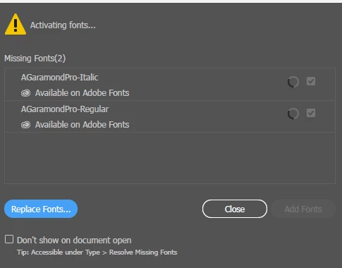 I am using the same fonts all the time - quick edits to business cards etc. Font errors keep popping up when I open files I use all the time - for fonts that are available on Adobe Fonts. They will be removed from my system (even if I used them as recently as the day before) and just keep cycling in the Add Fonts panel.