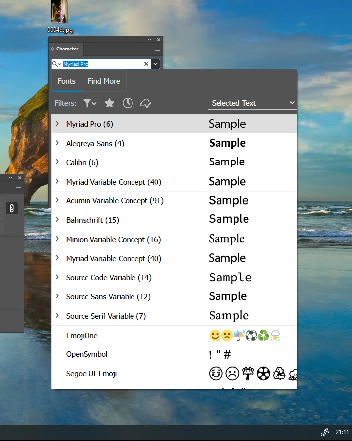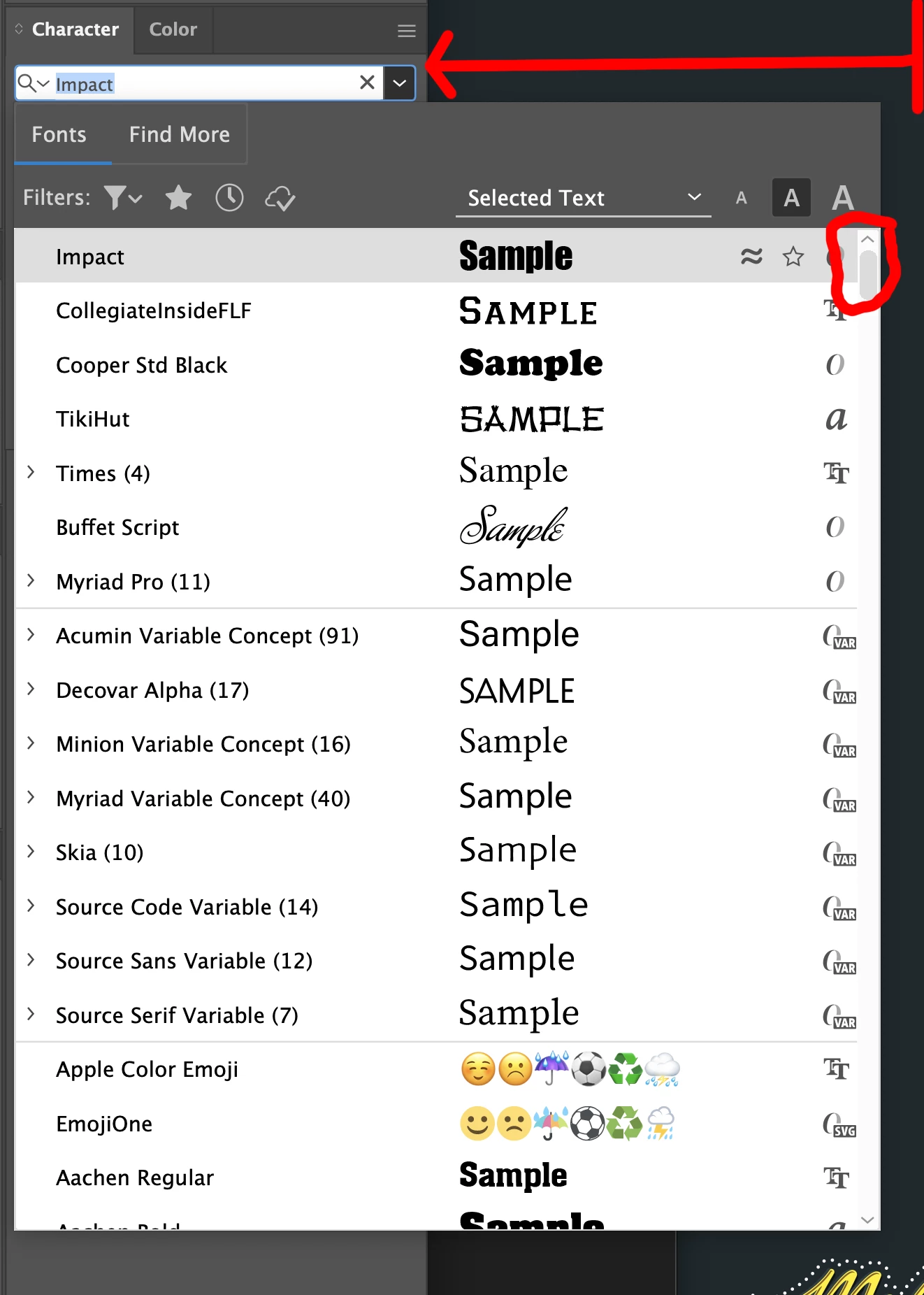 I'd really like to be able to see all my fonts in the Character panel dropdown as I used to in previous versions.