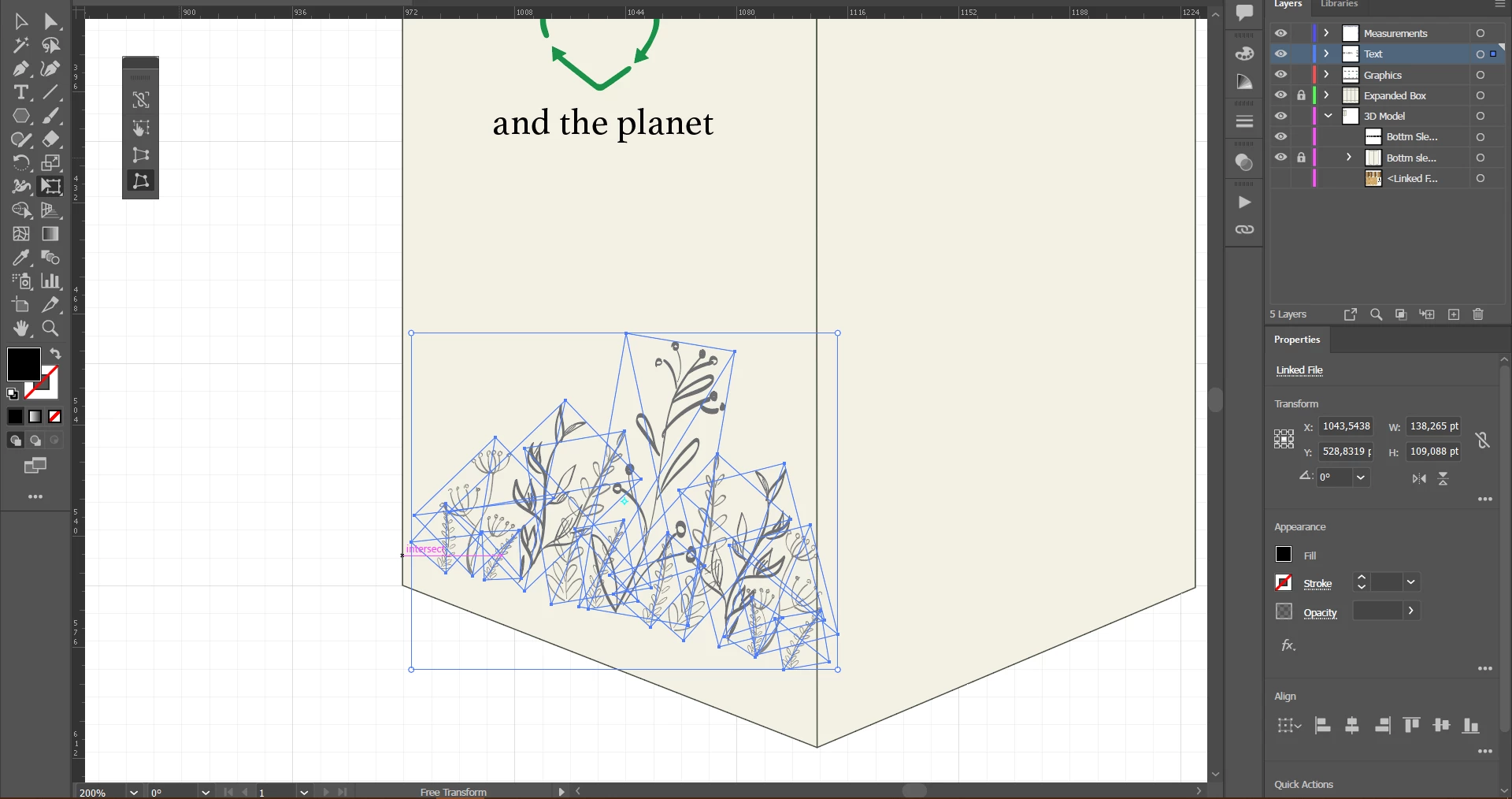 Hello, I am trying to free distort a linked artwork that I've made and been using from my library to a box shape, see the picture below.