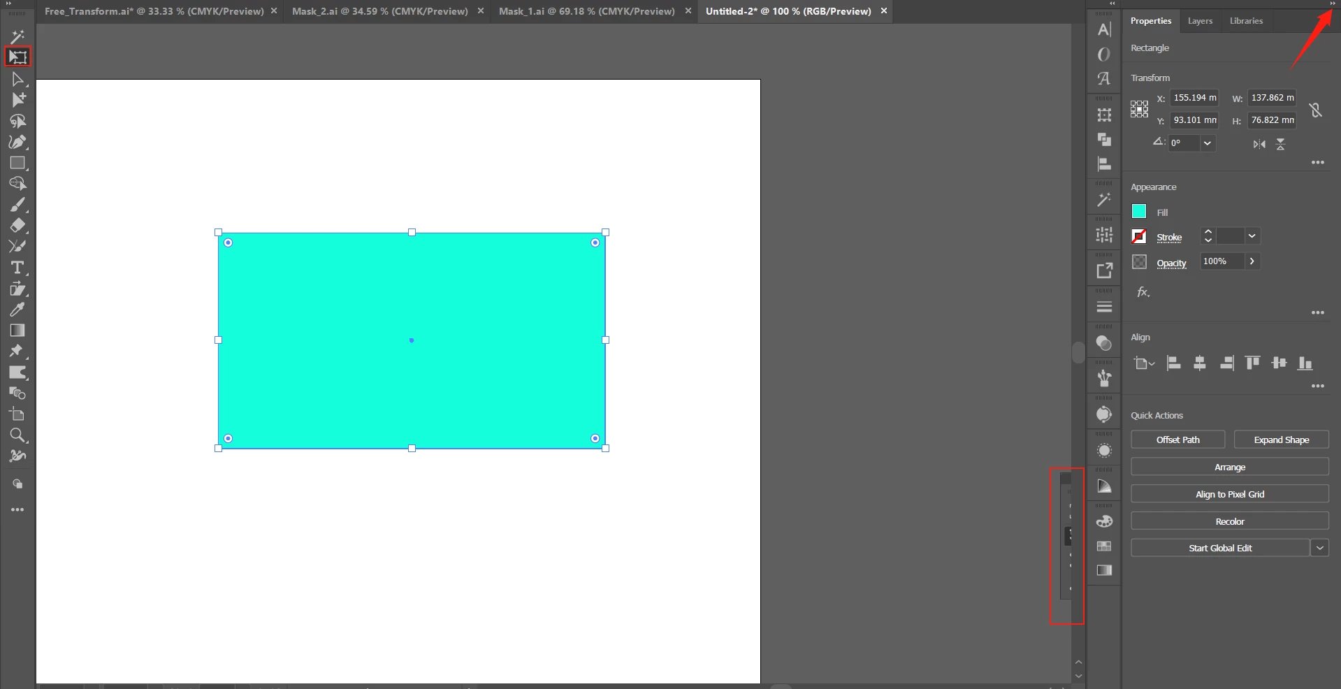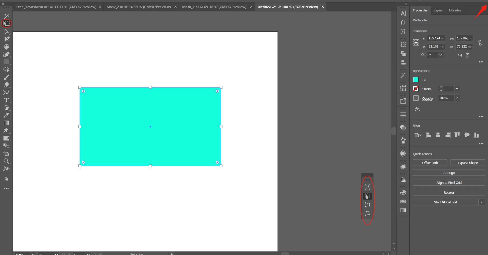 The screenshot shows the additional touch toolbar of the free transform tool. It will be visible as soon as you select and object and choose the free transform tool.