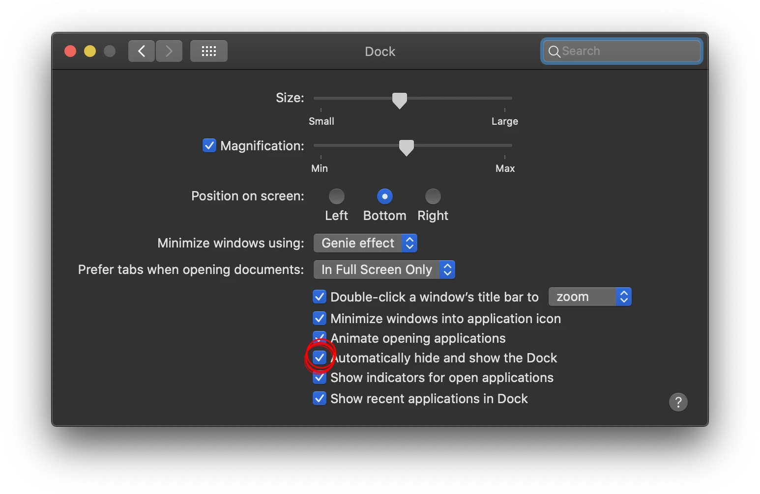 Hello, I'm using illustrator recently. When I'm in the software, the dock of applications on mac doesn't want to disappear and I can't find any settings that allow me to do it.