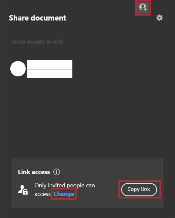 - Click the Copy link to share a cloud document as a link with stakeholders for feedback.