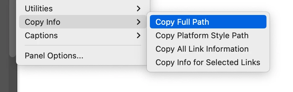 In an old file all links are missing but I have an idea where I can find them on my External Drive. I do need the complete names but i cannot copy paste from the link panel since it has not that feature which it would be nice. In the Document Info Panel it only export the selected one.