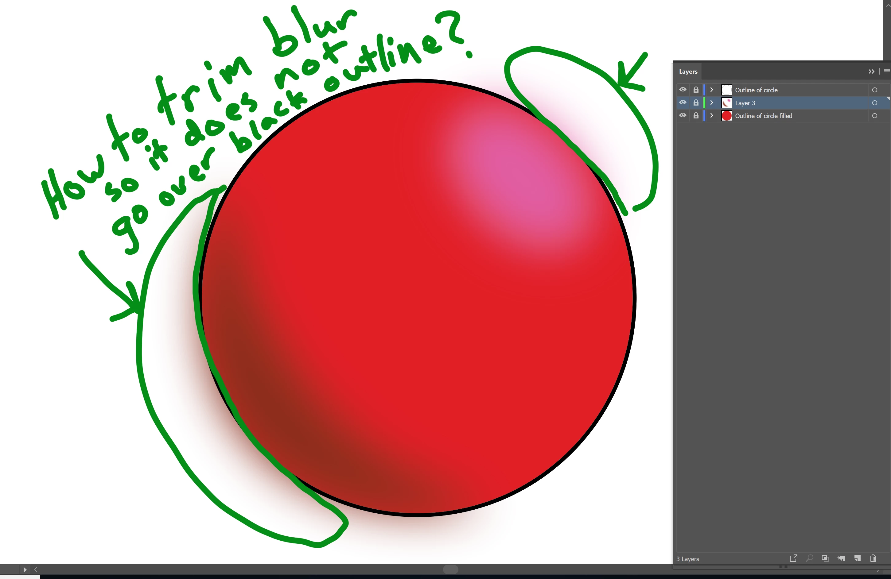 In Photoshop, if I create line art of let's say a character in one layer. Then in a layer below it, I color the line art (fill in the shapes with solid colors). Now between those layers I want to had shadows or highlights. I can easily do this and use a Gaussian Blur. I want the blur to go directly to the edge of the line art. So in the layer with the gradient I can erase the portion that goes out side the lines. Thus, the shadow or highly stays with in the object.