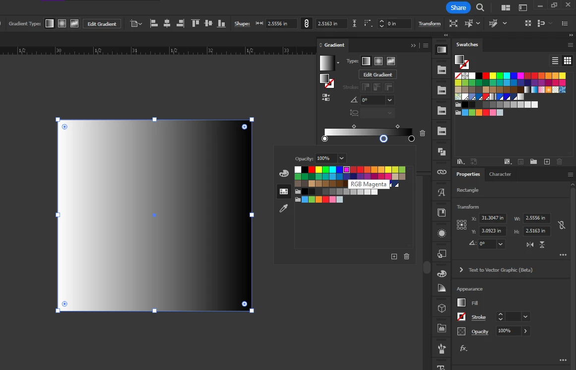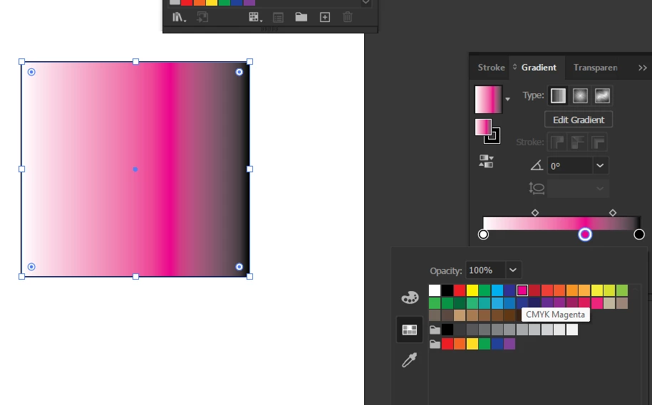 When using a gradient stroke or fill, sometimes Illustrator will not allow me to select a color from the swatches to replace the existing color in the gradient. See screenshot below where I added a stop in the middle, tried to replace it with Magenta, and the color did not change.