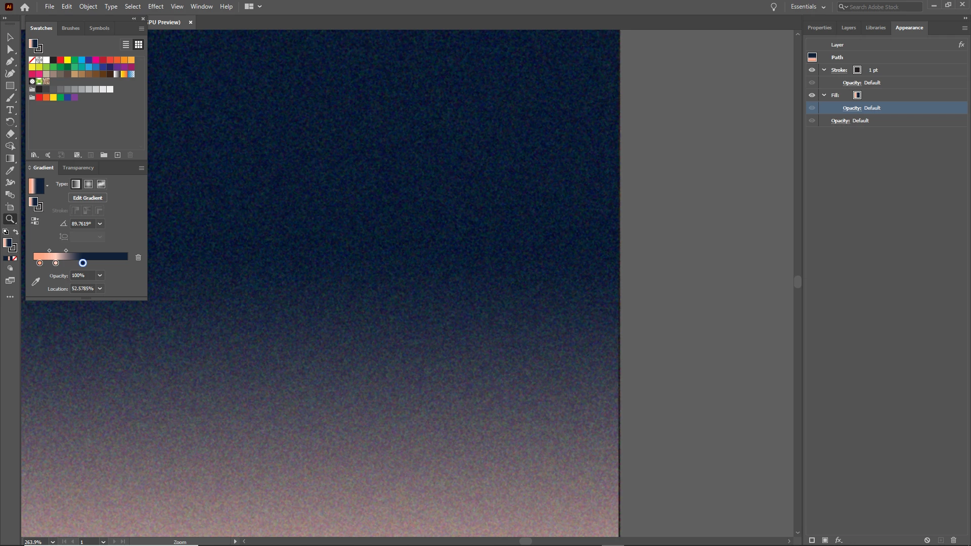 The new rectangle continues to have these color noise grain effects, but there is no sign of those effects being applied in the Appearance panel.