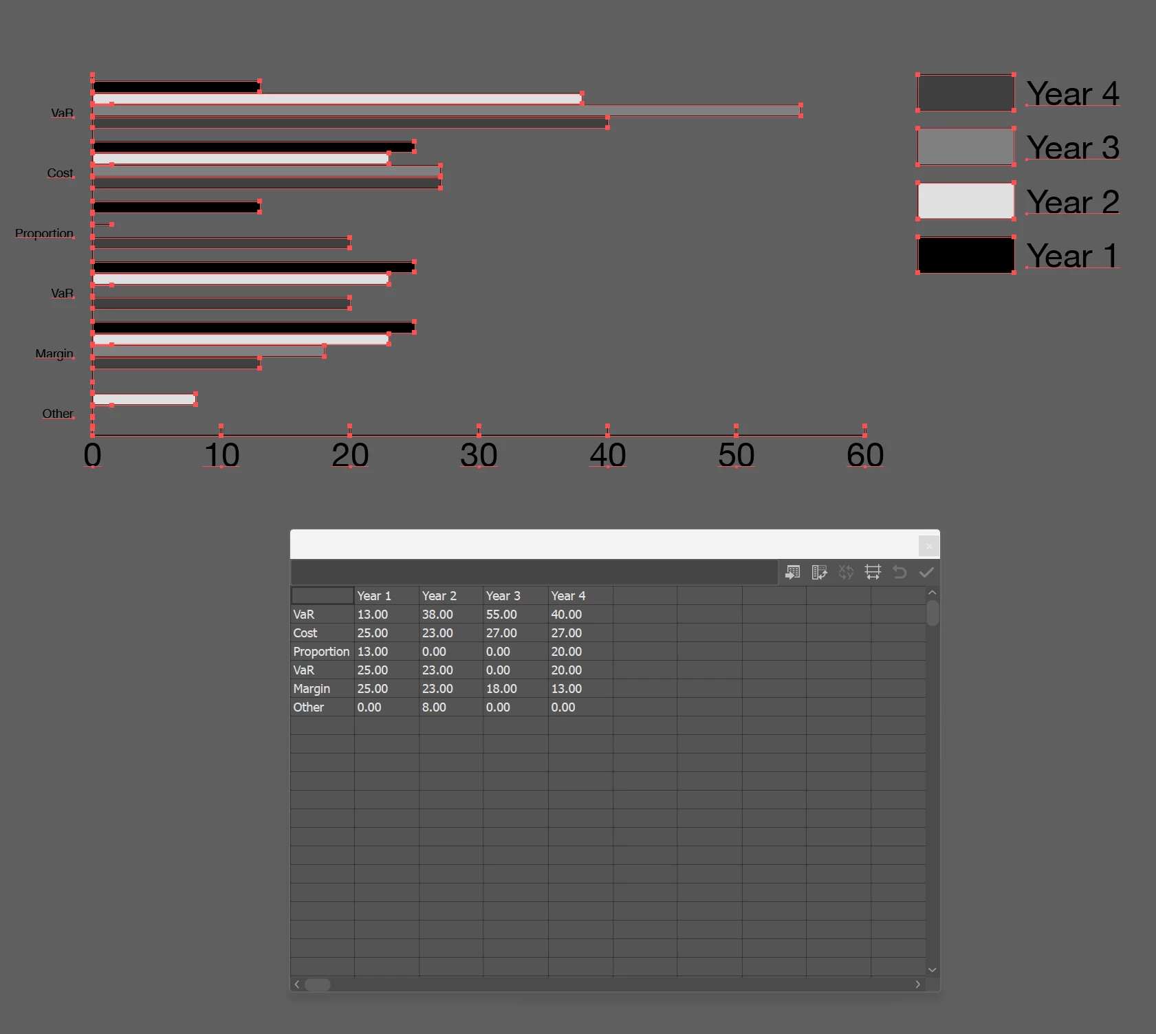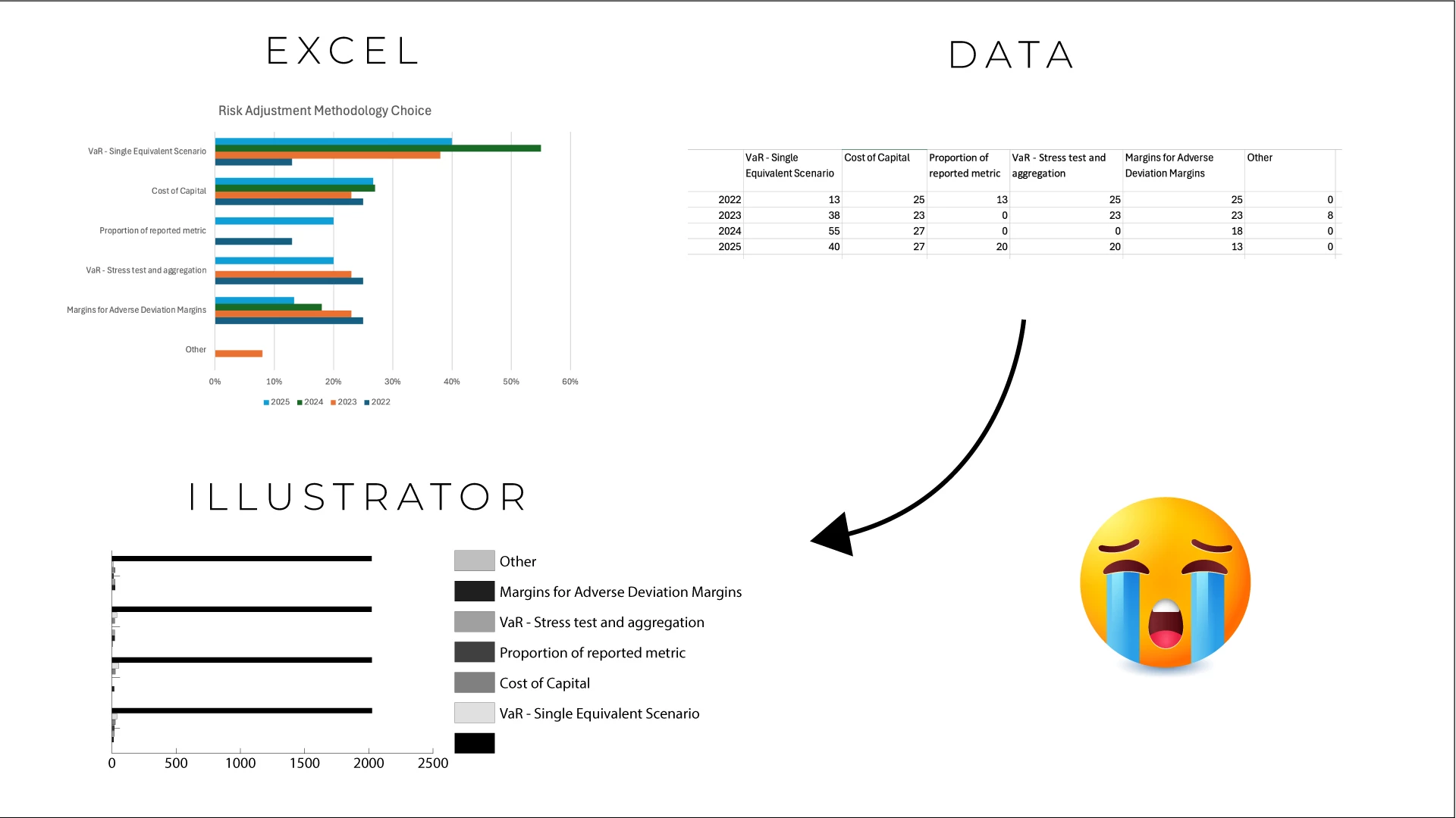 I'm having a frustrating time understanding the graph tool in Illustrator. I have 70 graphs to create from excel data for an InDesign report, very little time.