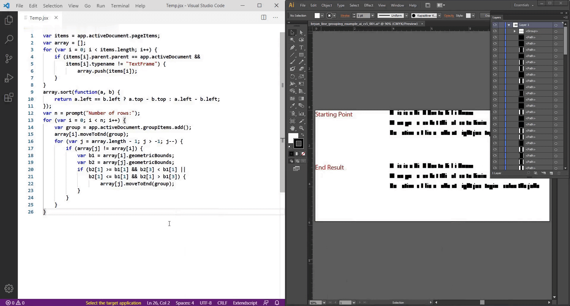 Help with Script that will Group the shapes by row. If you look at the sample file I'm hoping to get a script that will take what is there and result in 4 groups.