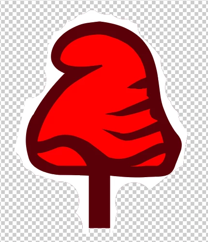 What I'd like to end up with is what's shown below, but without the white outline - transparency where it's now white. In PS I would make a selection of everything white and delete on the relevant layer.