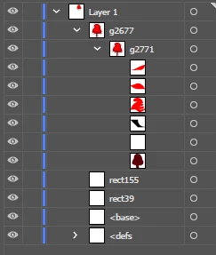 To start I've deleted all of the unnessary layers and then used the eraser to whittle it down to as close as I can get it to where I want without worrying about erasing parts I want to keep. These are the remaining six layers. The black layer above the white doesn't really do anything; the dark bugundy layer on the bottom was black before I changed it. I have no idea what the bottom four layers are doing since toggling their visiblility doesn't change anything that I'm able to see.