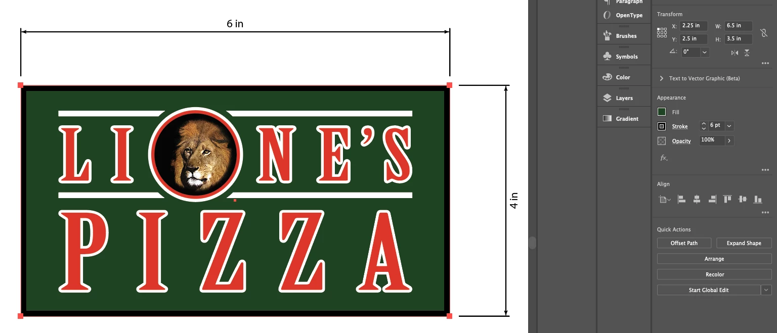Made a simple logo and want to send it with dimensions. As you can see on the right, the actual box (with rule on the inside) is 6.5 x 3.5. But when I used the dimension tool, it's regestering it as 6 x 4 ???? What?