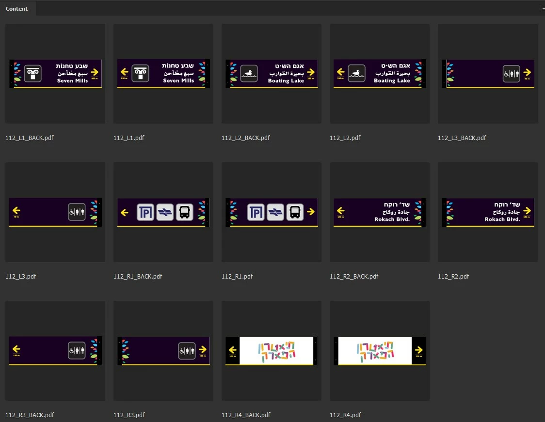 then, it'll create one ai file that will include all pdfs with the same prefix as links, while sorting them as shown here, into 4 different rows: