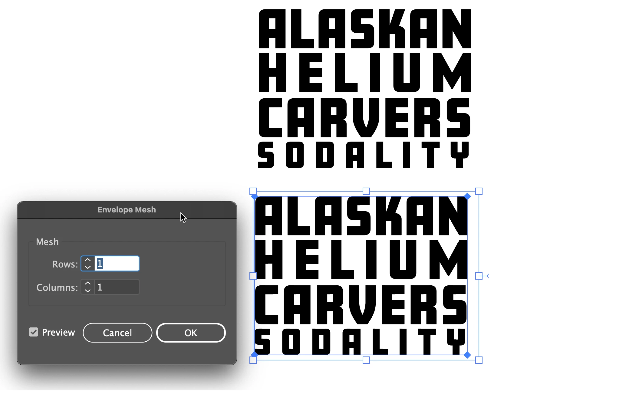 I am trying to recreate this style of design and having some trouble. I've been creating custom shapes that come and fit together to create a square/rectangle and then using envelope distort --> make with top object to fit the text into the shape, but the font isn't coming out perfectly shaped. Does anyone have any ideas how to correctly create this?