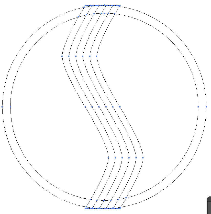 I want to have both the white and black lines on the same weight (unlike the sketch). So when I try to vectorize it, i decided to take the middle black line, trace it until halfway down, copy and mirror it down, add white stroke, expand, add black stroke, then the rest of it.