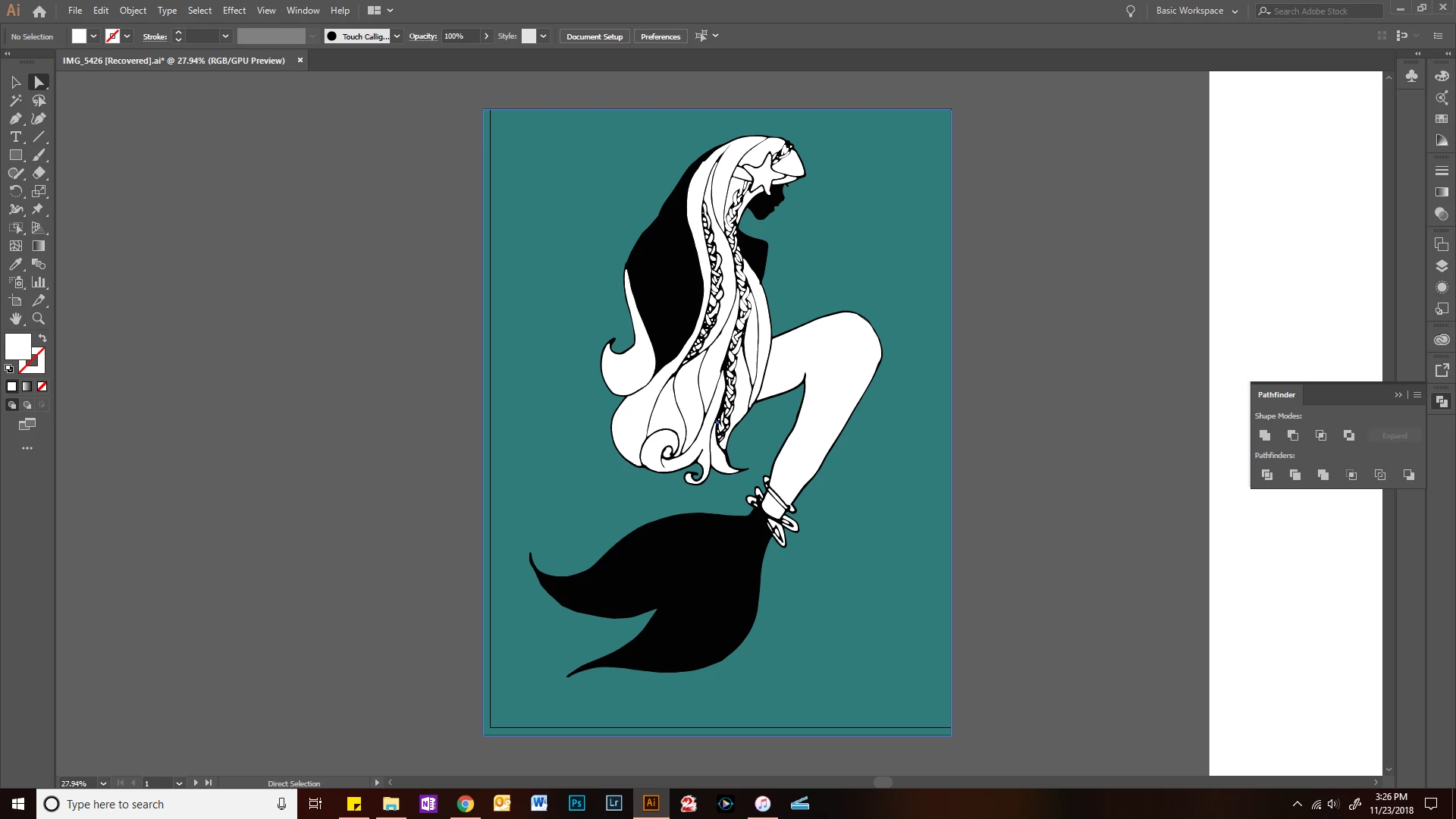 I've already Image Traced it, and I am happy with the results. The only problem is that I'd like to put the line drawing on a colorized background for cards, which I can't do because the inside of the drawing is filled with white. As you can see: .png)