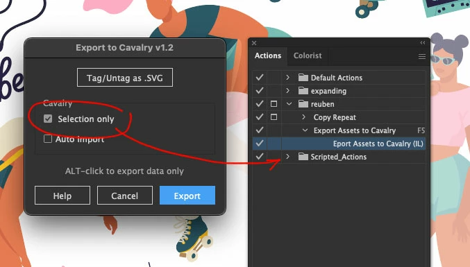 I'm creating a script called "Export Assets to Cavalry". It uses custom Actions in functions to work around the lack of native Illustrator scripting API. In my case, I'm using a make_action() function to get an array of highlighted layers in the Layers palette. Everything works great when launched from the File menu. Now I want to attach a Function Key keyboard shortcut to it, but since Illustrator once again lacks the ability to attach shortcuts to user Scripts (like PS can), the workaround is to attach a Menu Item to an action in the Actions palette. But now this creates a recursive loop, wherein, when executed from the Action palette, when I fire off specific parts of my script , my script creates a temp folder called 'Scripted_Actions' and causes Illustrator to hang. I have to Force Quit and I get a crash report from Illustrator.