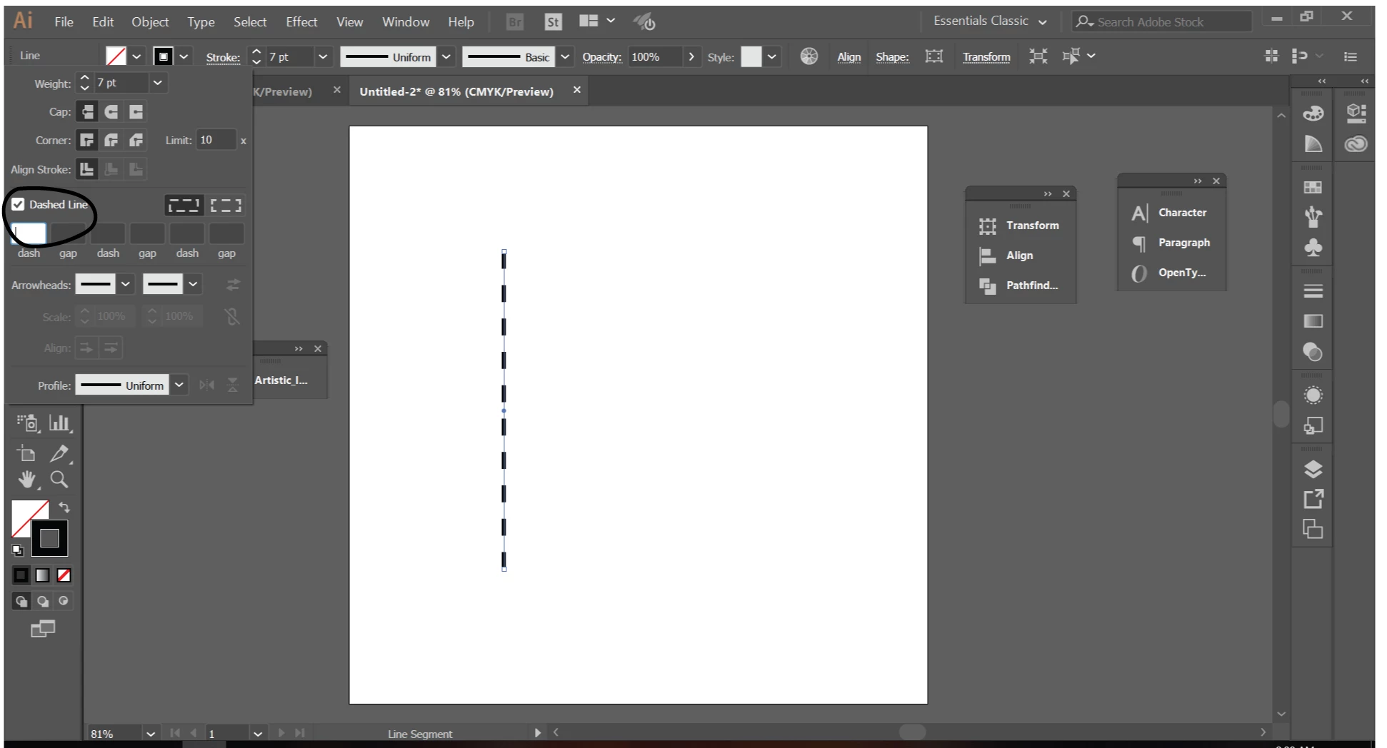 hi this can be easily done using line tool and in stroke section choose dash line option let me know if you not understand understand..thanks