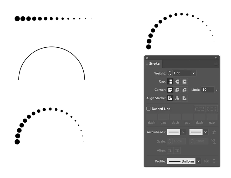 Or as shown on the right, use a dotted line with a width profile.