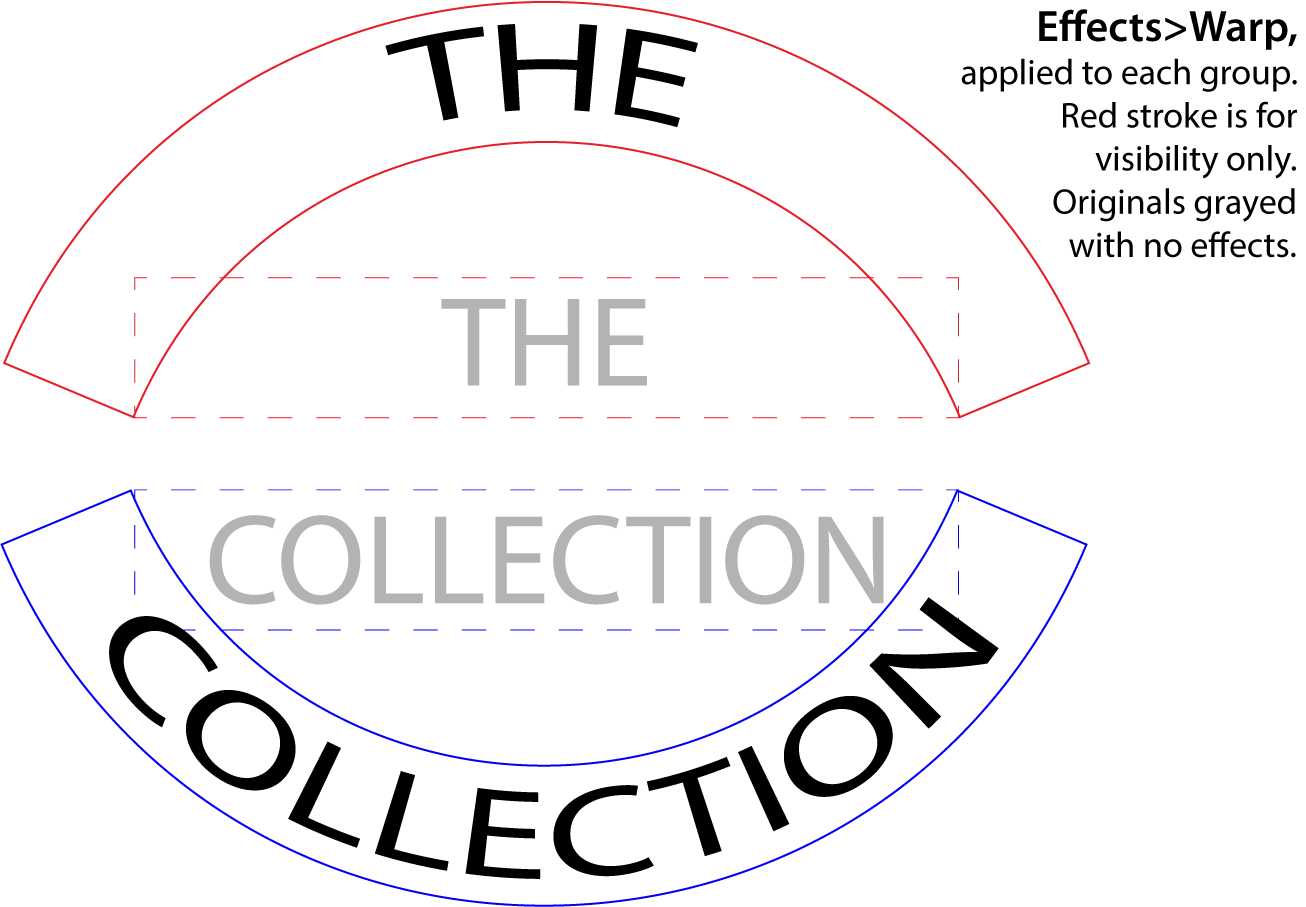 Hello, I need some help figuring out how I can make objects follow a circular path in illustrator. I know how to make actual text follow a path but I made "The Collection" myself using rectangles and then united them. I also know I can put it in an envelope but I can't seem to configure it to make it look as nice as it would if it were actual text on a path. I'm fairly new to illustrator so any help would be much appreciated, thank you!