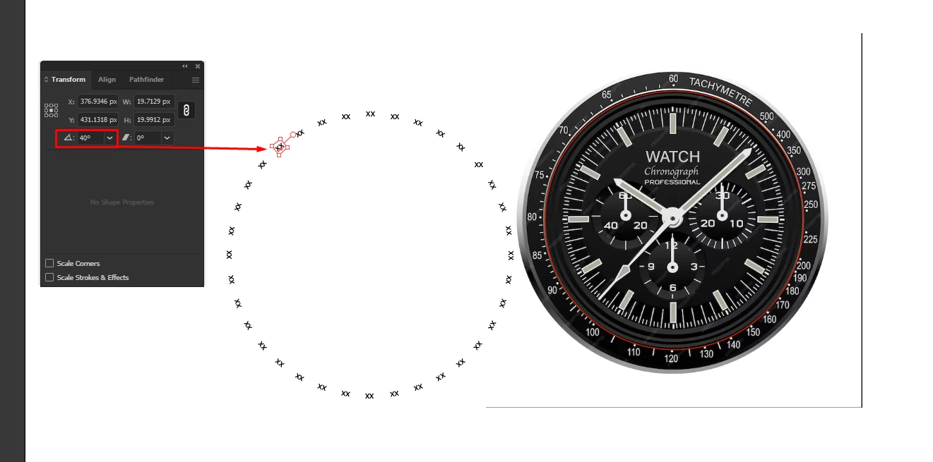 How can I make tachymeter numbers rotating around a circle