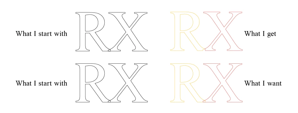 The letters in the image are only outlined to illustrate the issue.