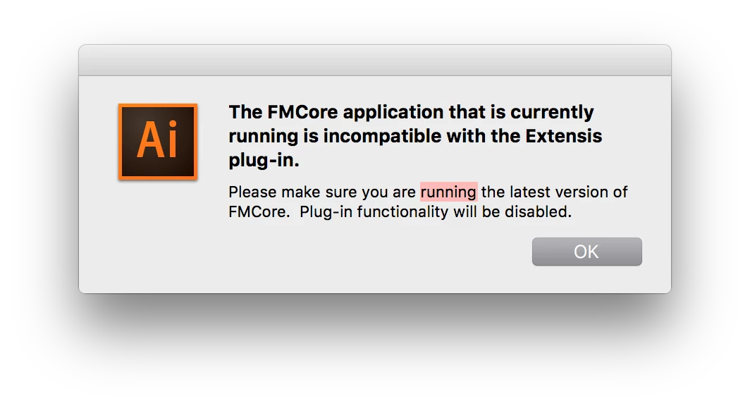 I don't have suitcase but Adobe CC software, when launched, keeps coming up with message the fmcore application that is currently running is incompatible with the extensis plug in.