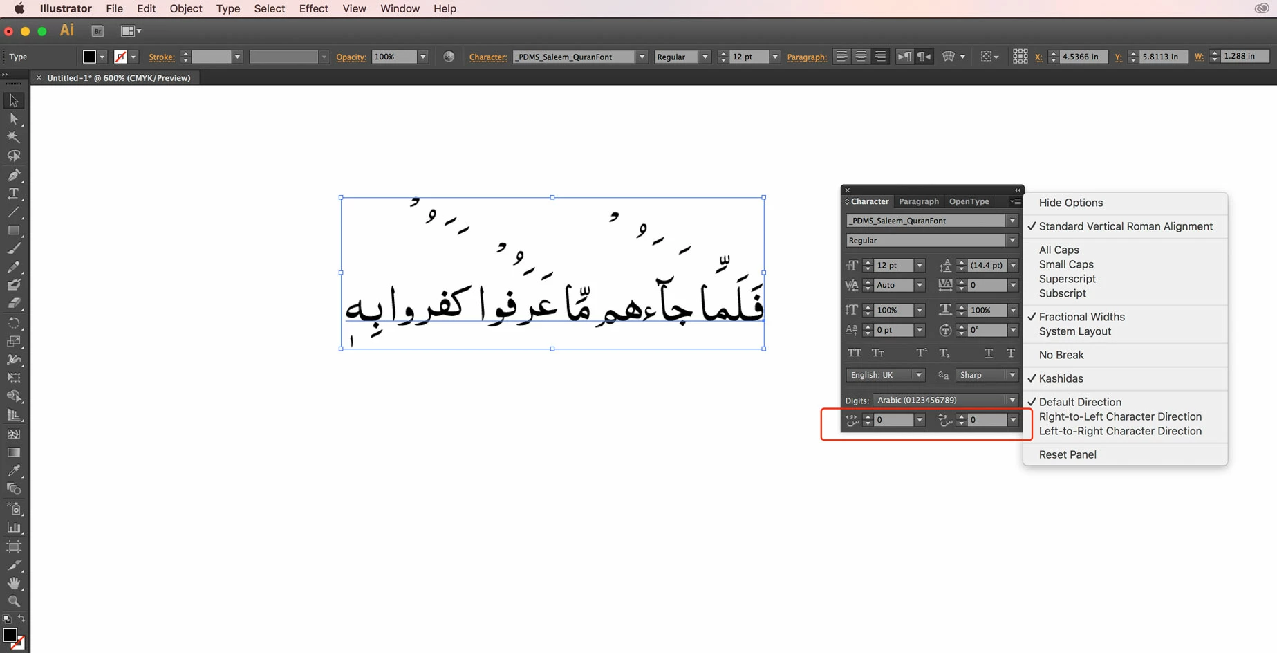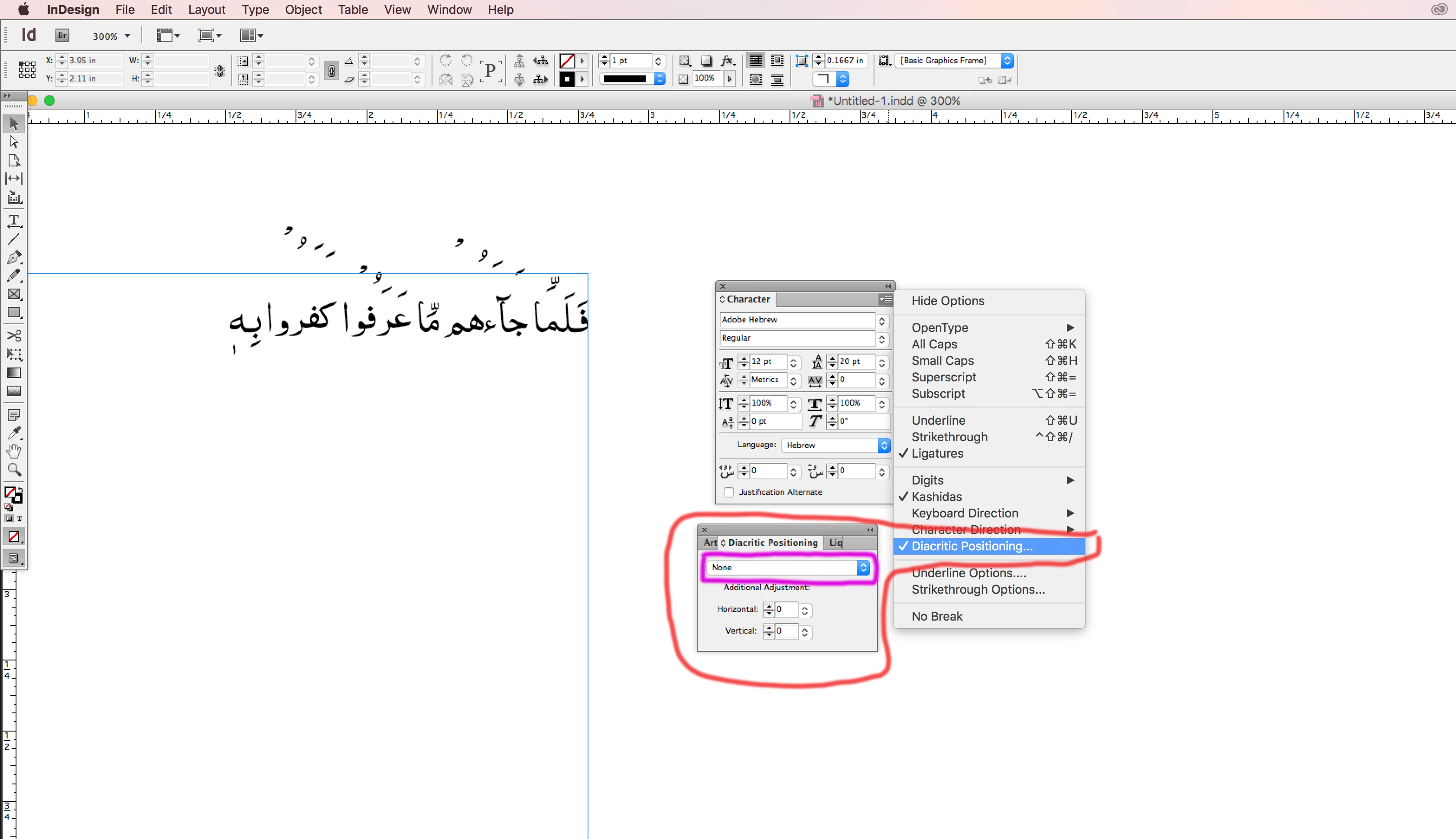 How can I see Diacritic Positioning Rules in Illustrator cs6 Middle East