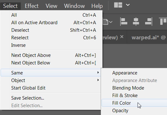 Select any of the green text and choose Select > Same > Fill Color.