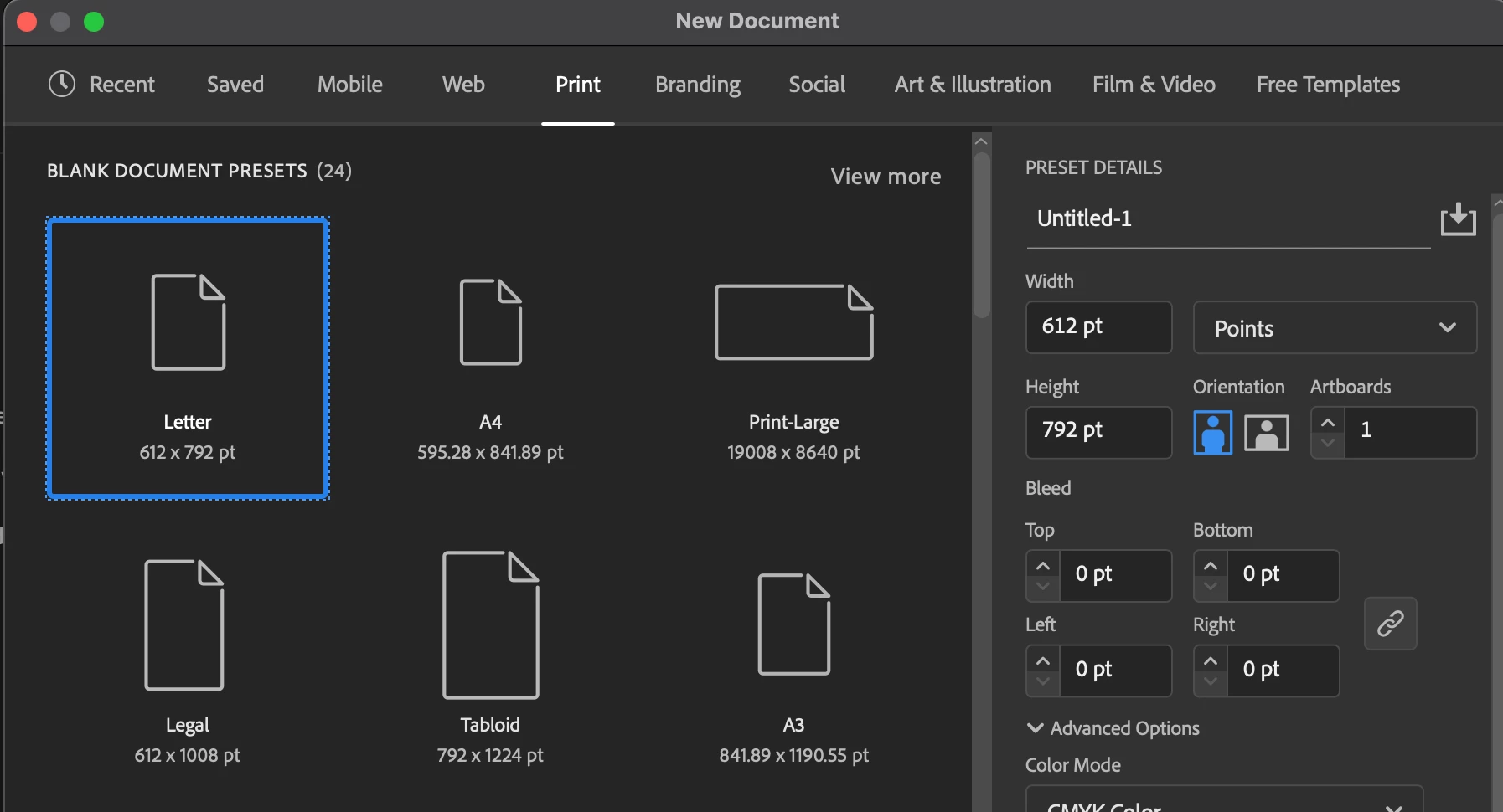 All of my 'print' document presets are measured in points, despite the fact that the default Unit in preferences is set to millimetres, and that I have never and will never use points for document dimensions.