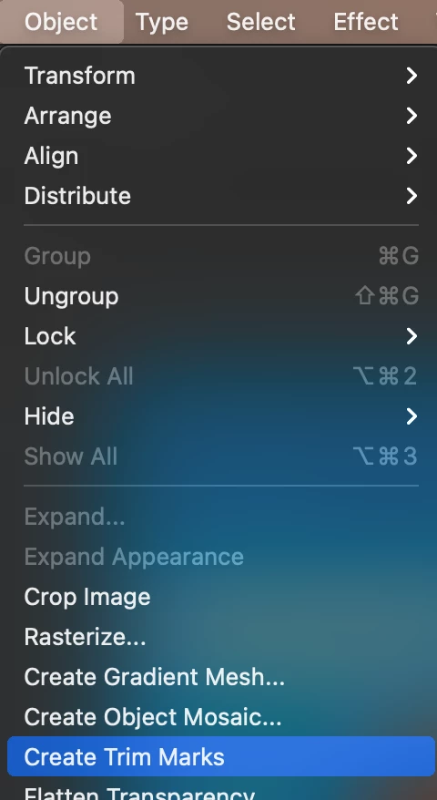 How do I change the "Create Trim Marks" tool to automatically make the line 1/4" and not 1/2"?