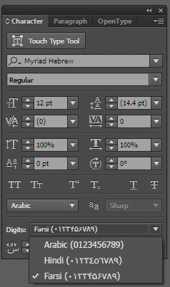 How do i convert enlish numbering and alphabets to arabic? Im using adobe illustrator adobe cc2018 version. There is no digits option in charater tab available. Please helpg