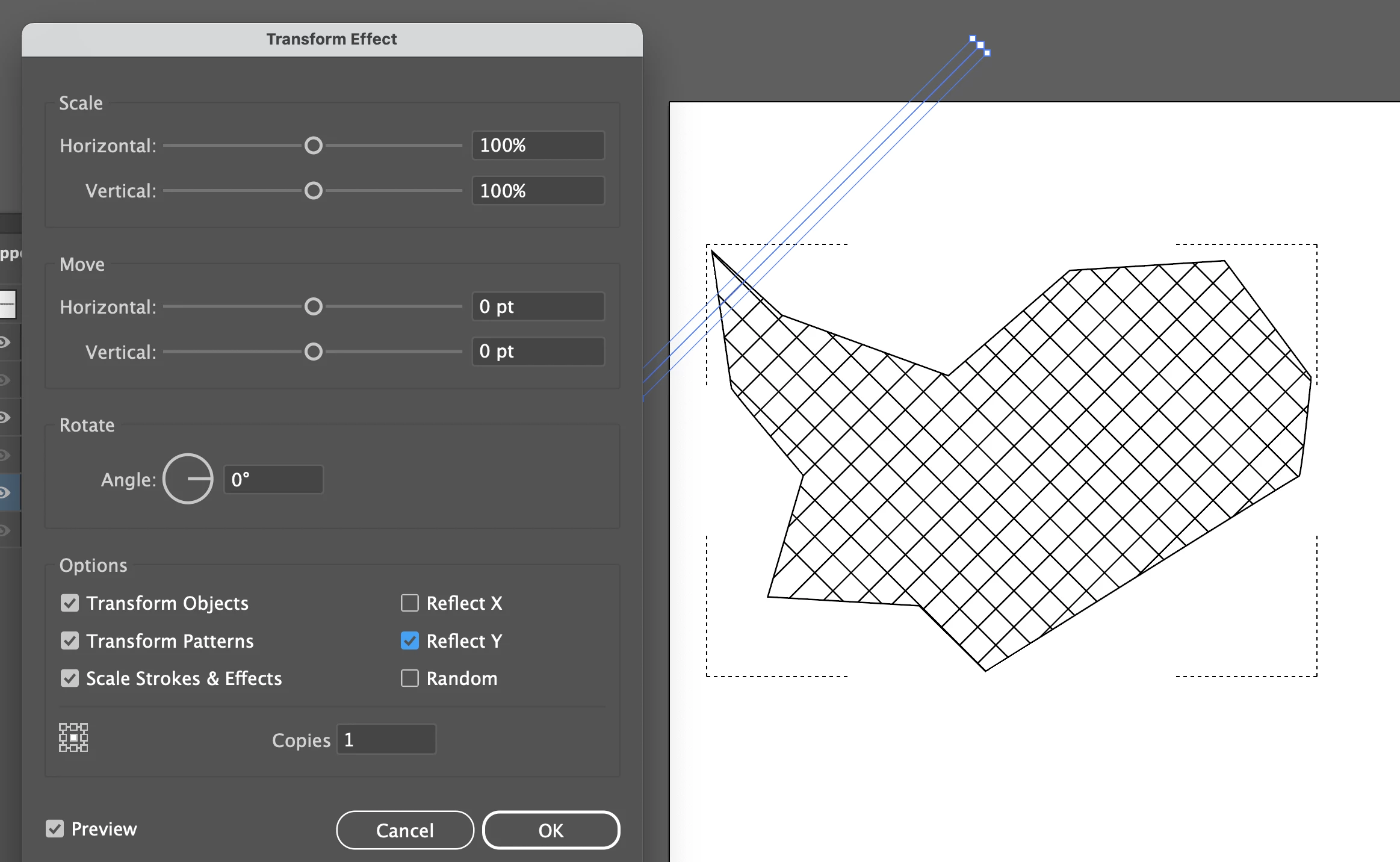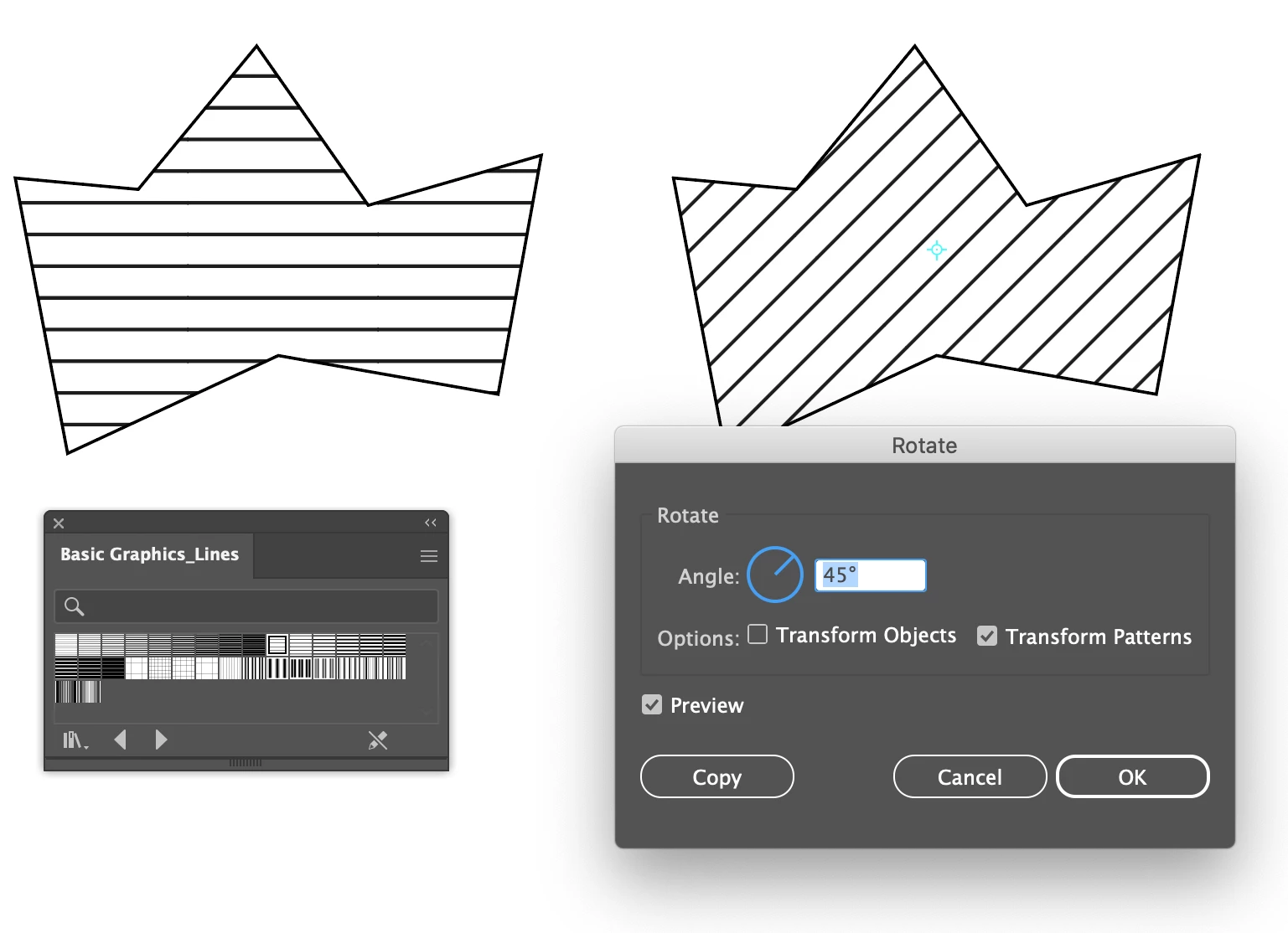 How do I create 45 degree cross-hatching for an irregular shape?