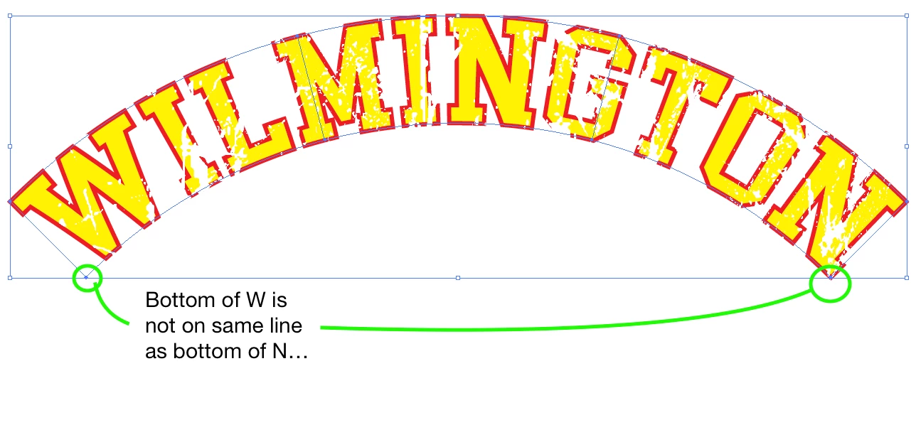 When I create warped arc text using the AI warp tool, it never seems to have great symmetry. Take a look at this example:
