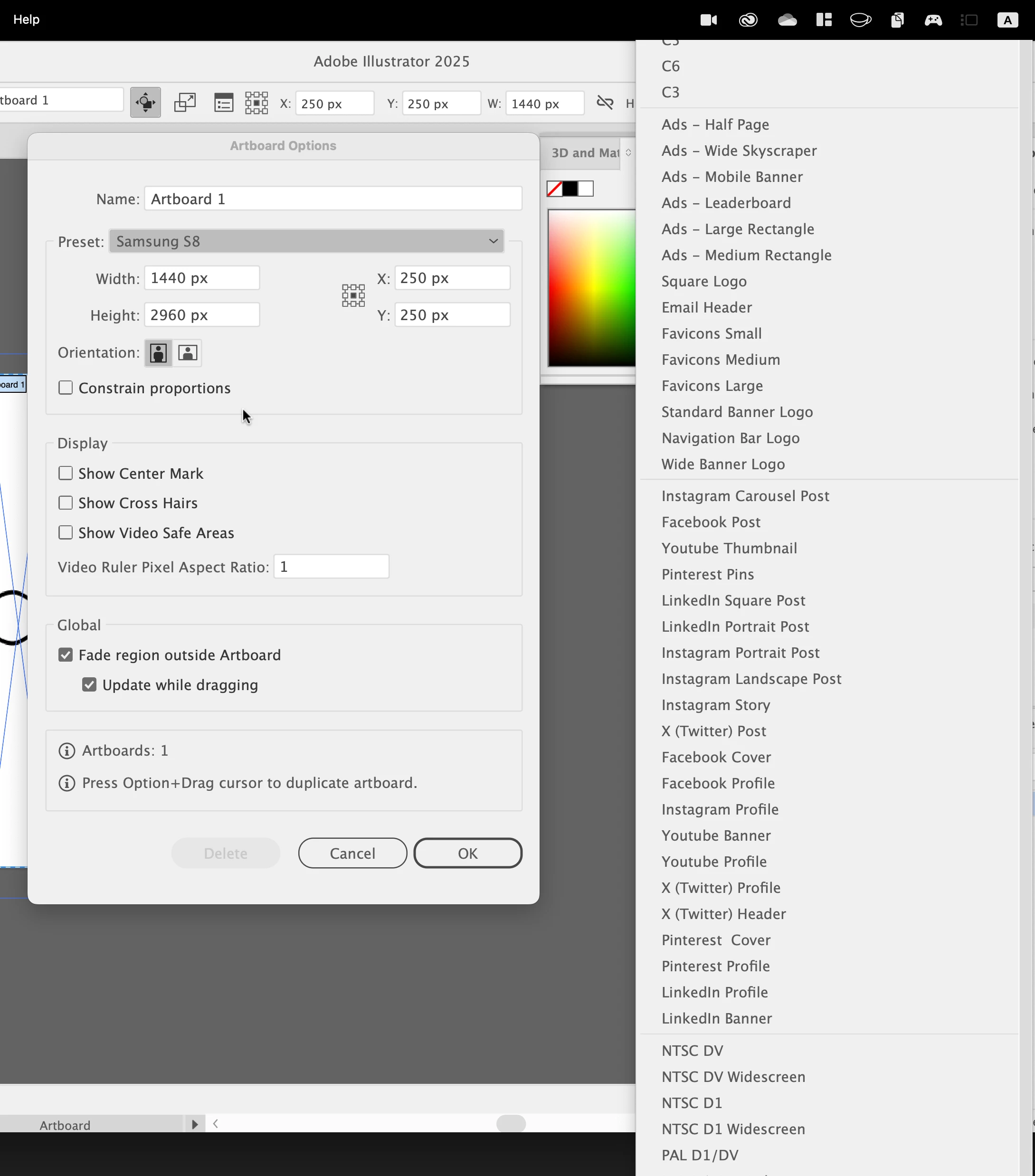 How do I delete artboard presets? (29.3 macos)