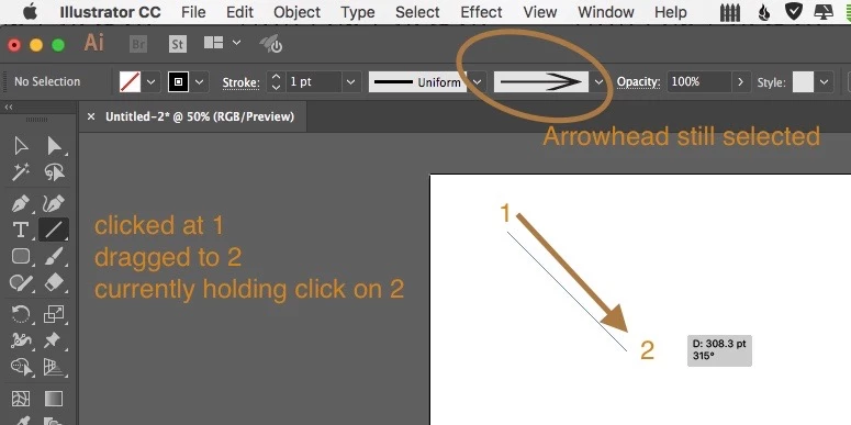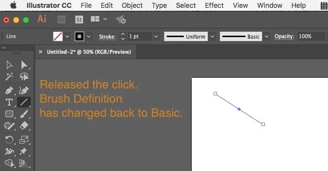 How do I draw a line with an arrowhead? Brush Definition keeps reverting after releasing click