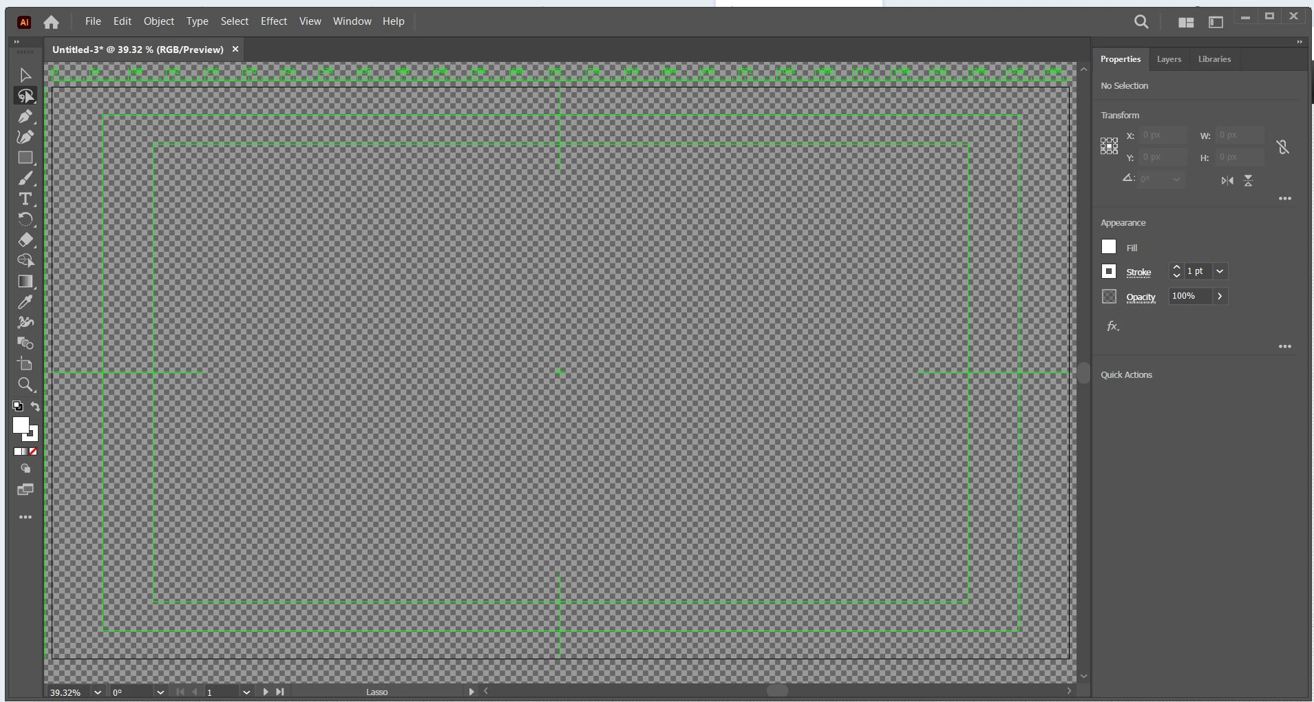 I think the Illustrator new document preset that was chosen was Film & Video, not Web. The Web new document preset opens with a solid white background and no guides. The Film & Video preset opens with the transparency checkerboard, and most tellingly the green lines because those are specifically for video only: They include the video rulers and the video markers for title-safe and action-safe margins.
