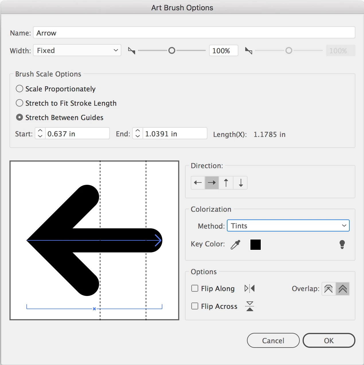 I'm attempting to lengthen an object (an arrow). I'd like the arrow head, and width of the line to remain the same size, I'd just like to extend to length of the arrow. The tip of the arrow is rounded with 3 anchor points. Each time I am able to extend the arrow, it's extending it thinner, and pointier. I've done it before, and can't recall how I managed to do it. Keyboard functions for Mac if possible. Thanks!