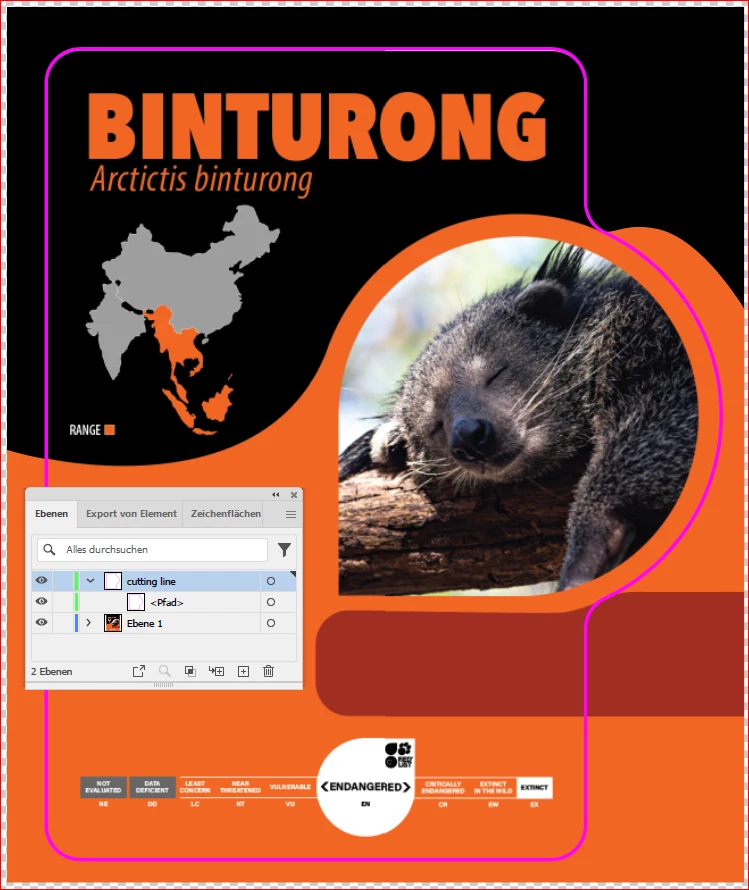 I've added curves around the edges of the animal photo, that both have 2 colors involved with the bleed. I'm having a lot of trouble figuring out how to add these colors properly on the extra .25".