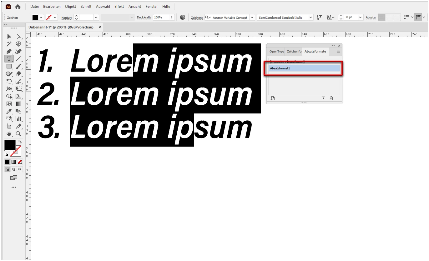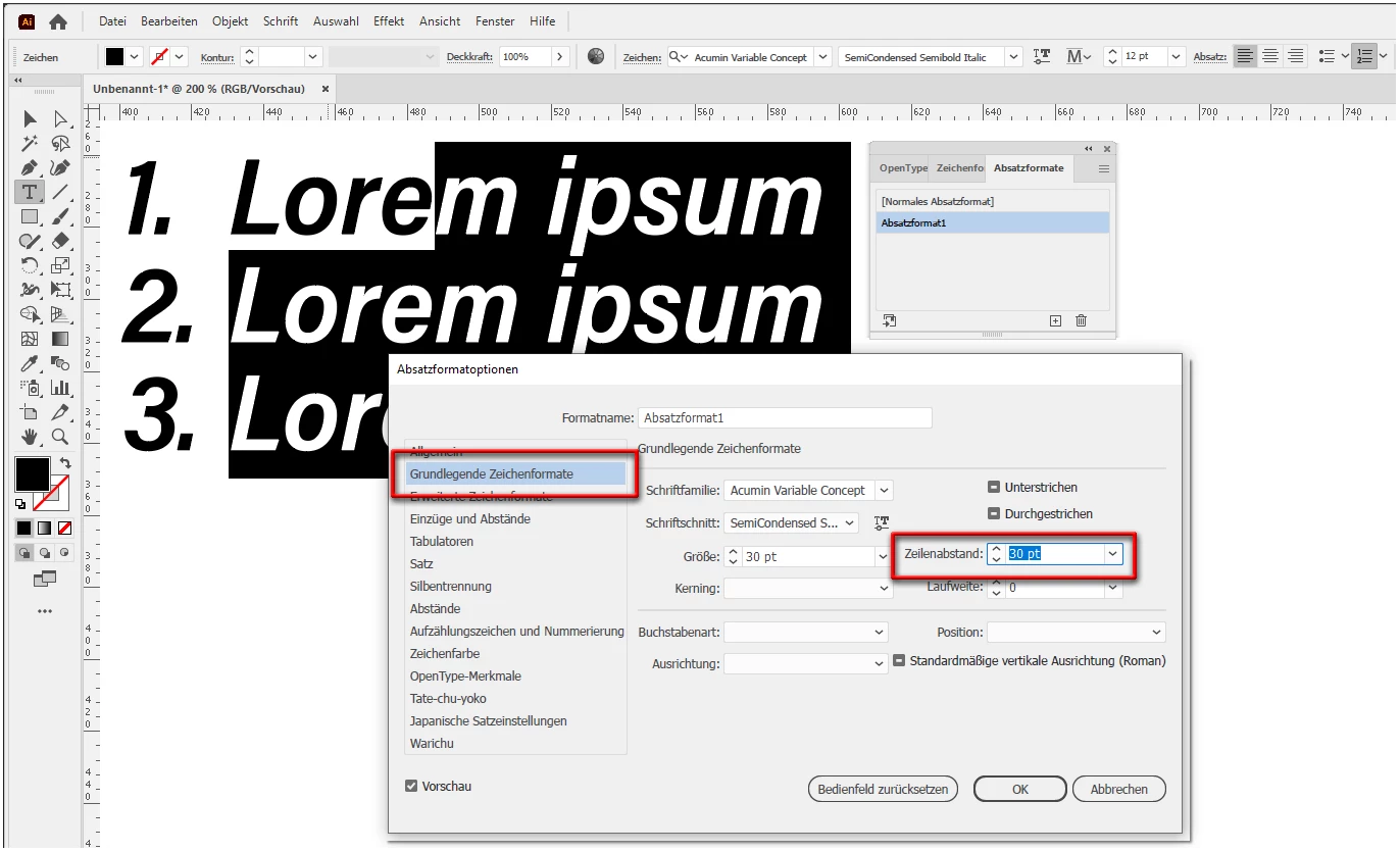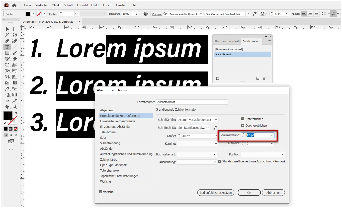 I can't adjust line spacing between number bullet points in illustrator.