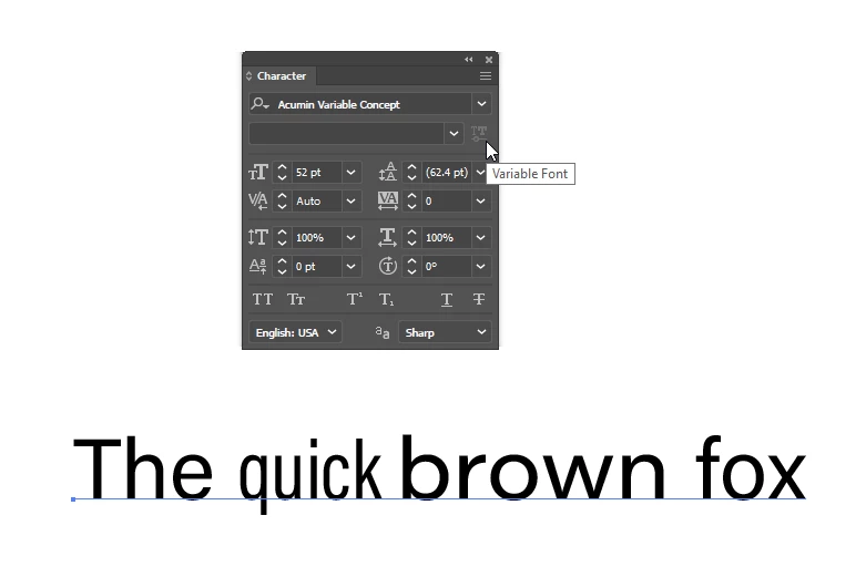 I have a font with two axes, weight and width. I have text with multiple weights. How can I change the width without changing the weight? When a variable font has multiple styles, the variable options button is greyed out. Is there a way to keep it open? If not, is there some third-party extension for working with variable fonts?