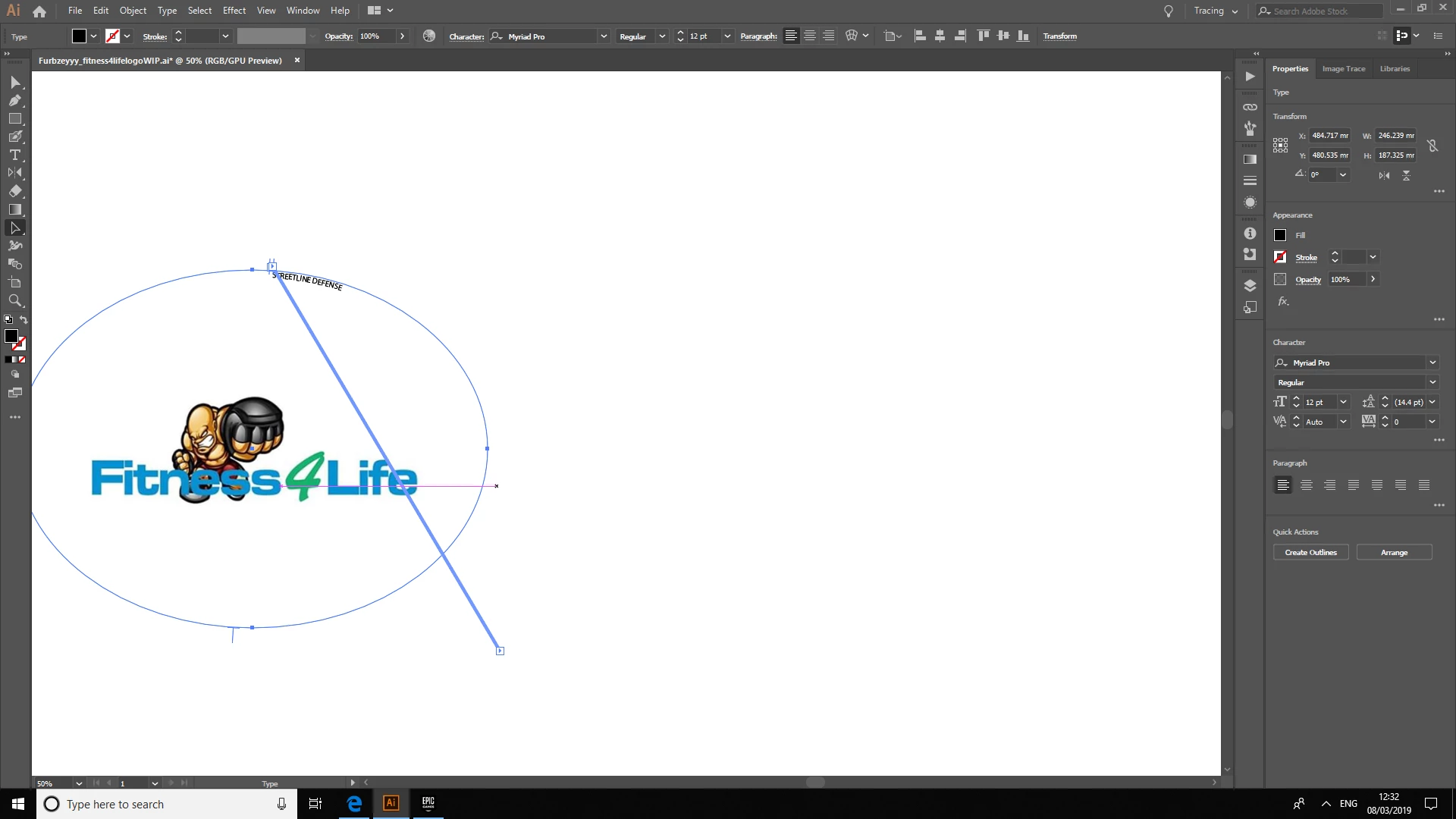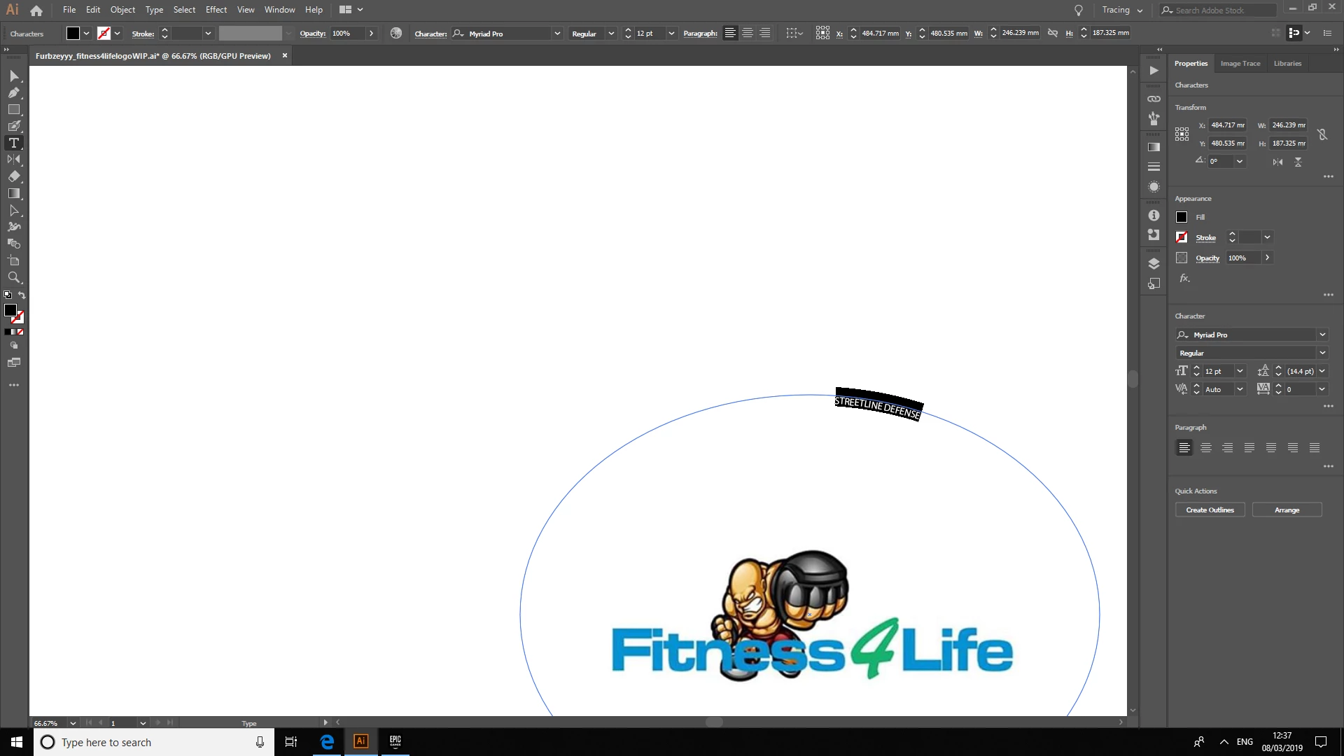 Make a circular logo with the fitness4life logo in centre, 'STREETLINE DEFENCE', above following ellipse inside path,' ESTD. 1994', below following ellipse inside path.
