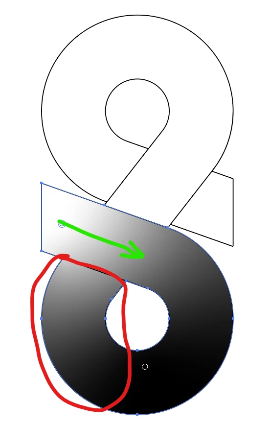 The white colour in the gradient overflows into the bottom area marked in red in spite of having a line over there to block it. I want the white colour to follow the green path as it feels like it should by default.
