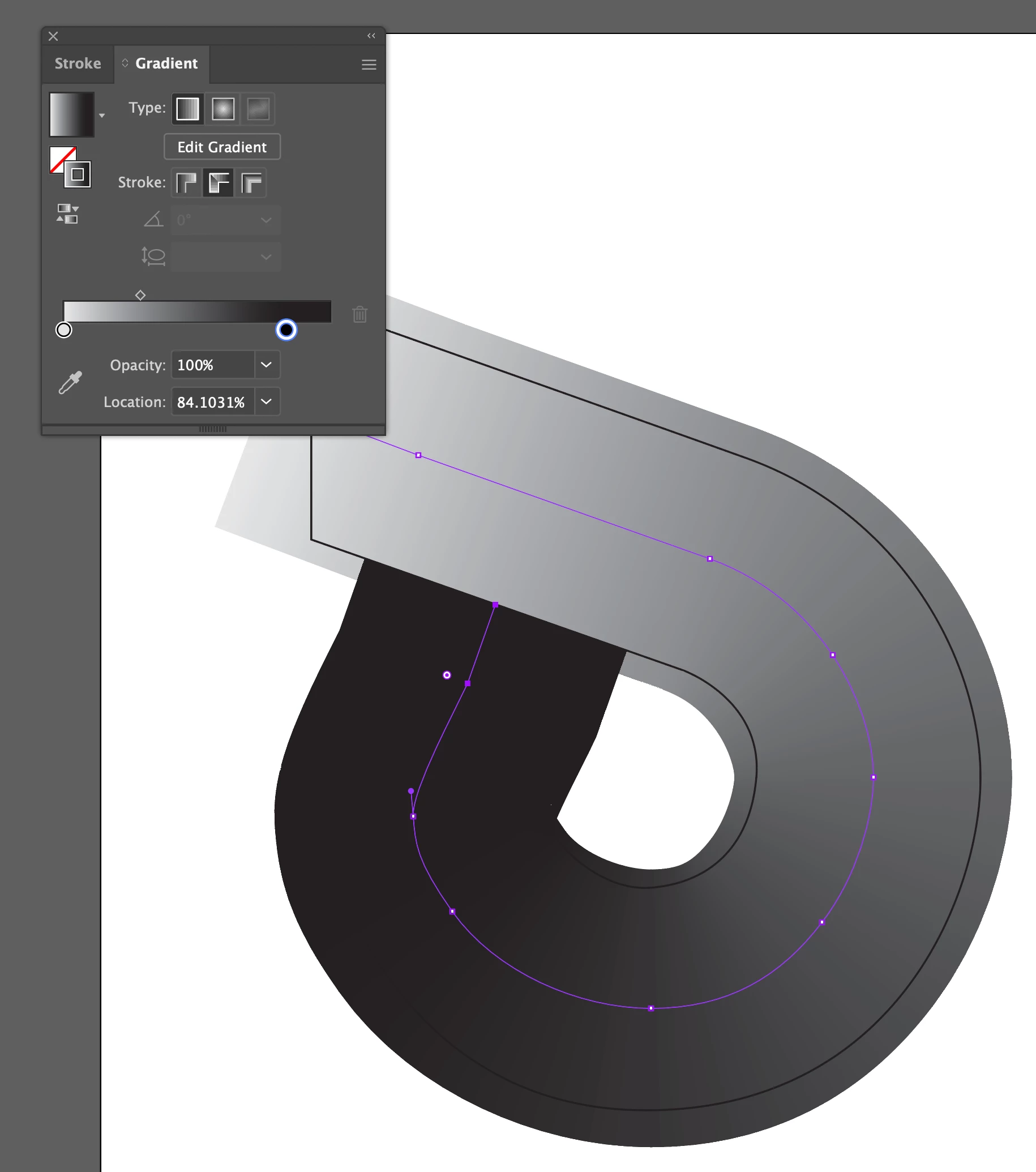 Make a wide stroke under your shape. Apply the gradient along the stroke, then use the shape as a clipping mask. It will require a little adjustement on the dark end of the stroke to make sure it lines up exactly with the end of the shape.