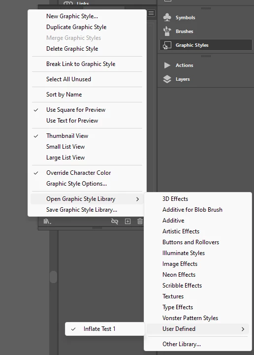 The only issue I am getting is that I save the graphic style, but then I cannot run it in my action... It records the application of the graphic style, but nothing happens to my image. I have saved it as "Inflate Test 1", but it does not run in an action...