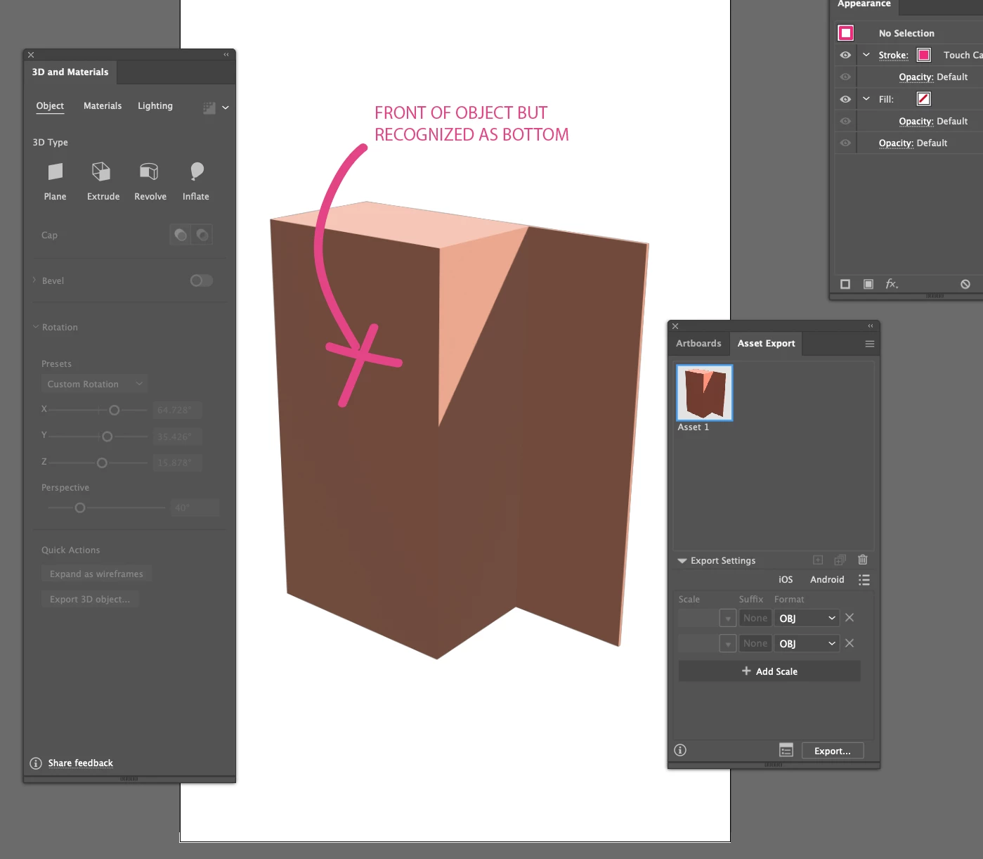 Once I've created my 3D shape in Illustrator, the program recognizes what I would like as the front of the shape as the bottom. Can I change what is considered the "front" somehow? Thanks for your help!