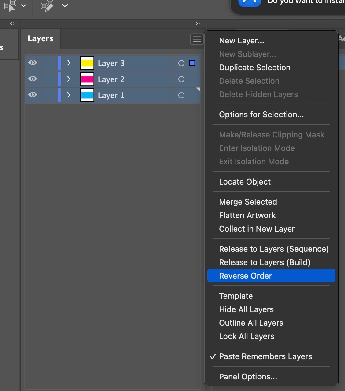Hello - I am trying to find an option to stack the layers that I duplicate in the reverse order that A Illus wants to do it.