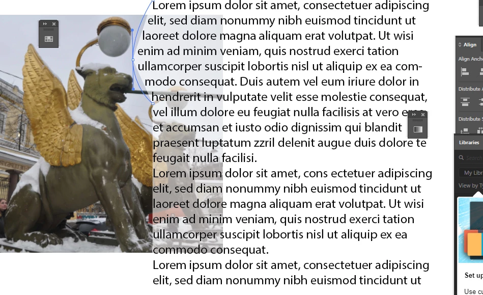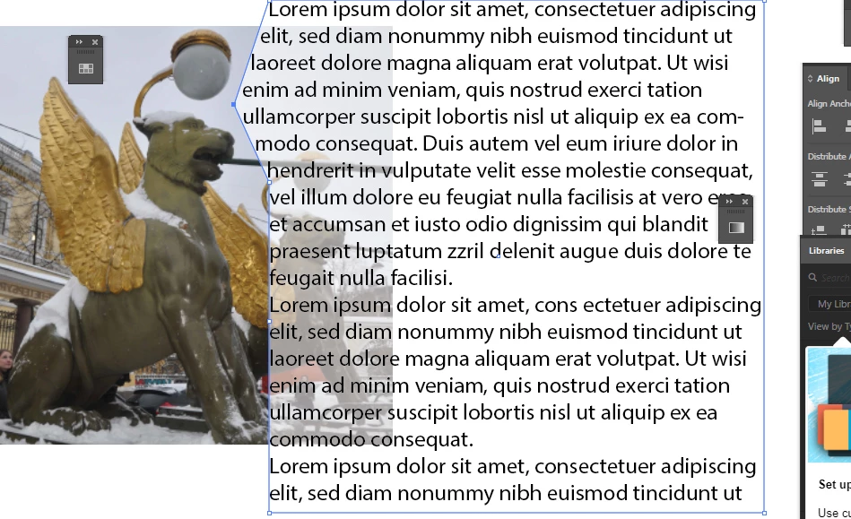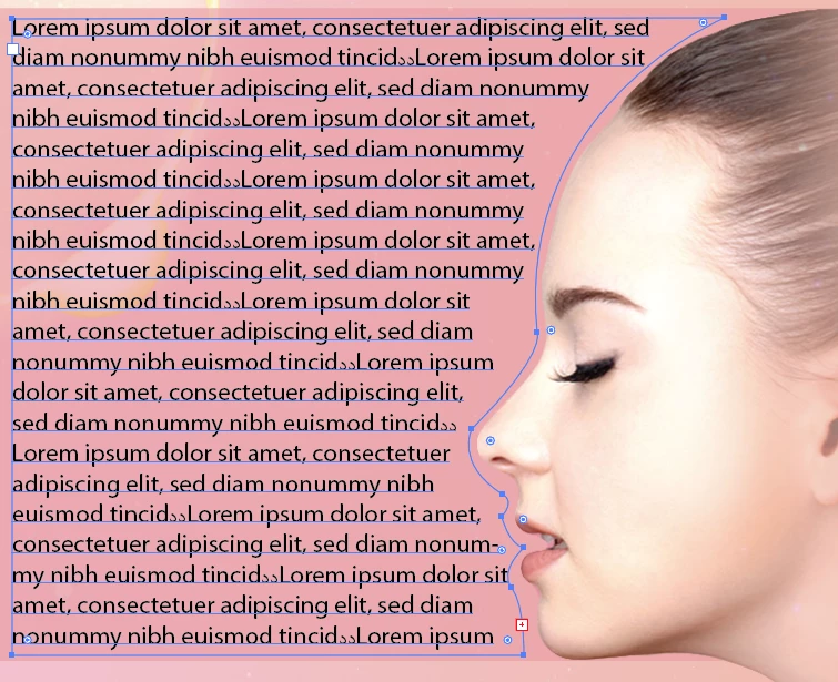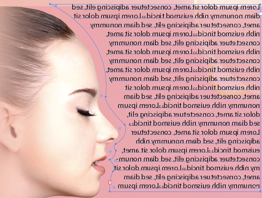 So this is an example of the text shaped or adjusted from the shape of the lady (see above picture). I need to know how it is done because I need to change the position of the lady from right to left so facing right, I need to also change the shaped part of the text. I just transformed the text box to show you how I want it to be but the text inside will also transformed (see picture below).