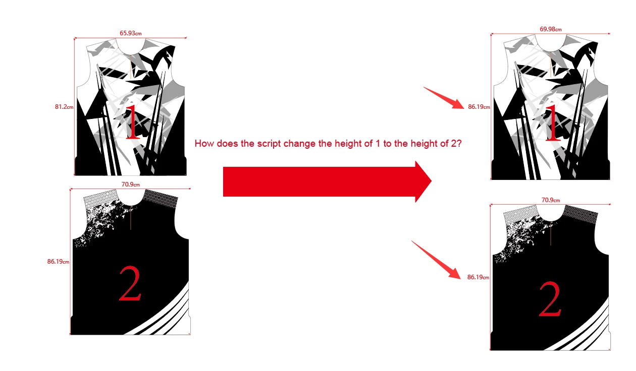 How does the script change the height of object 1 to the height of object 2? thanks