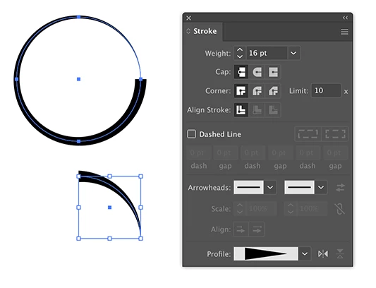 You probably cannot make it part of a circle, but you could start with a copy of the circle, apply a width profile and removet the left and bottom anchor points.